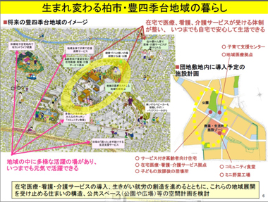 카시와시는 도쿄대학 고령사회종합연구기구(IOG), 도시재생기구와 함께 '카시와시 도요시키다이 지역 고령사회 종합연구회'를 설립했습니다.
