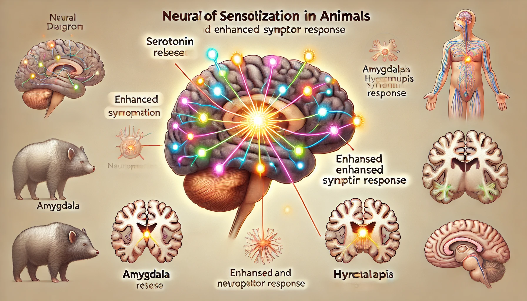 반면, 민감화는 세로토닌과 같은 신경전달물질의 증가 분비와 관련되어 있으며, 이는 신경세포 간 신호의 증폭을 유도합니다. 특히 편도체와 해마 등의 뇌 부위는 정서적 학습에서 민감화의 핵심 역할을 수행합니다.
