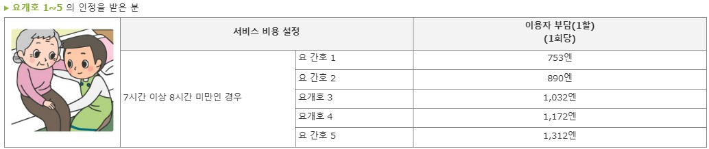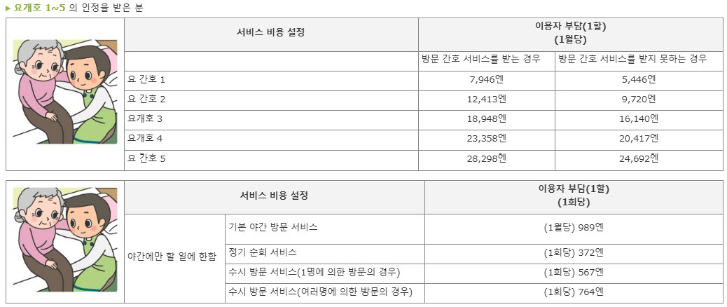 주의사항 : 정기 순회, 수시대응형 방문개호간호는 요지원1~2의 사람은 이용할 수 없습니다.