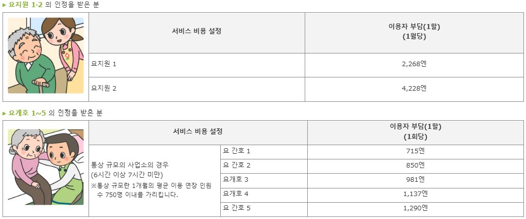 *통소개호(데이케어)는 사업소의 규모나 사용 시간에 따라 비용이 설정되어 있습니다.