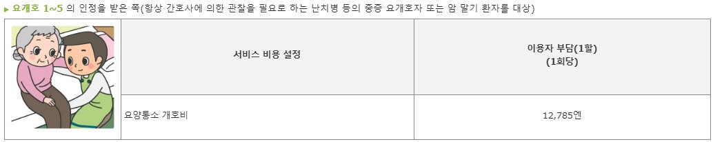 주의사항 : 정기 순회, 수시대응형 방문개호간호는 요지원1~2의 사람은 이용할 수 없습니다.