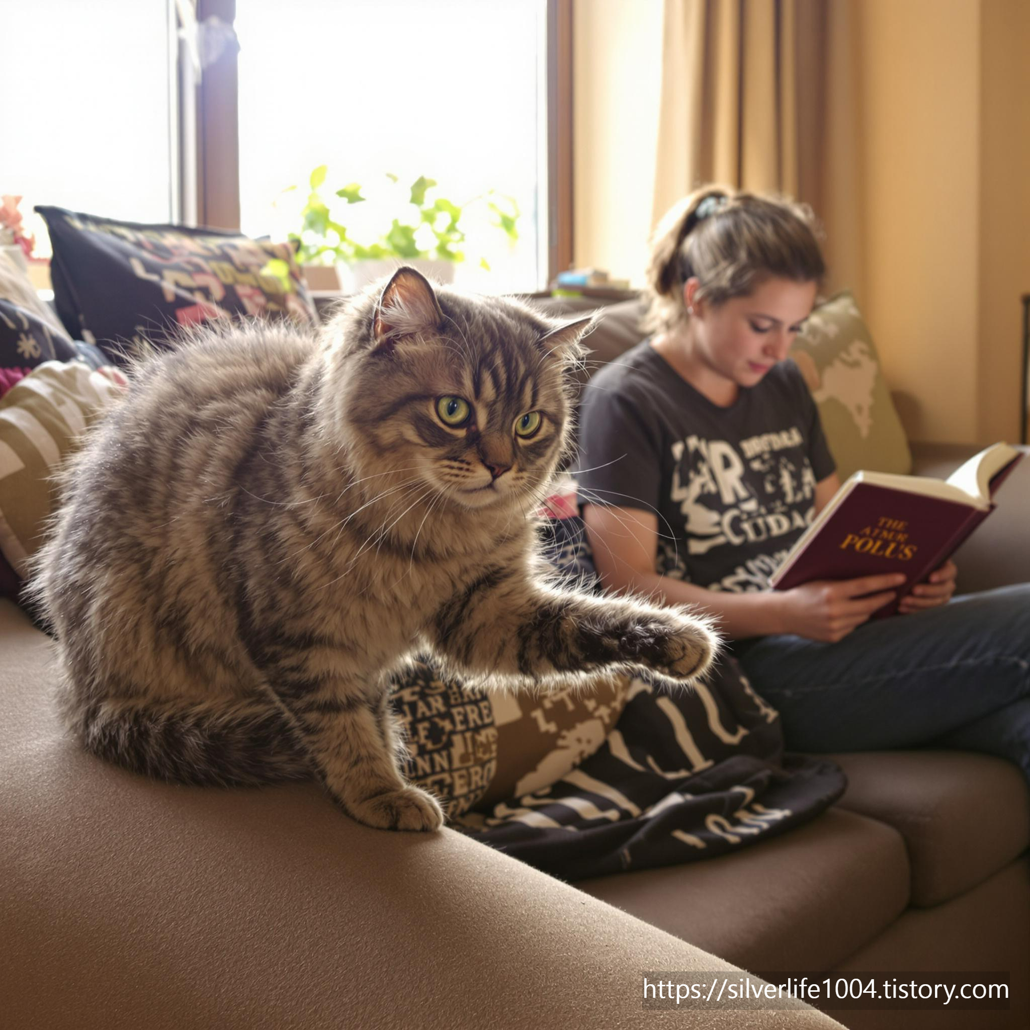 - 고양이가 올라타면 부드럽게 쓰다듬어 주거나, 가볍게 대화를 나누세요.