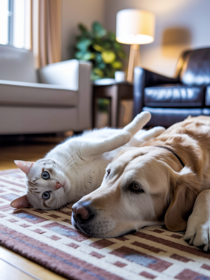✅ 고양이와 강아지가 함께 있는 공간이 조용하고 안정적인 분위기여야 함