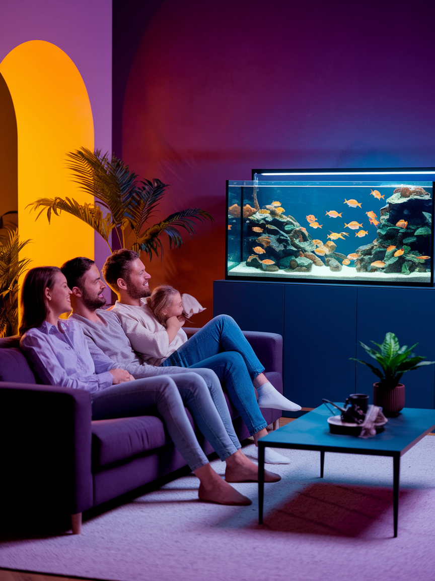 ✅ 인테리어 효과 – 수족관 속 화려한 열대어는 공간을 아름답게 만듭니다.