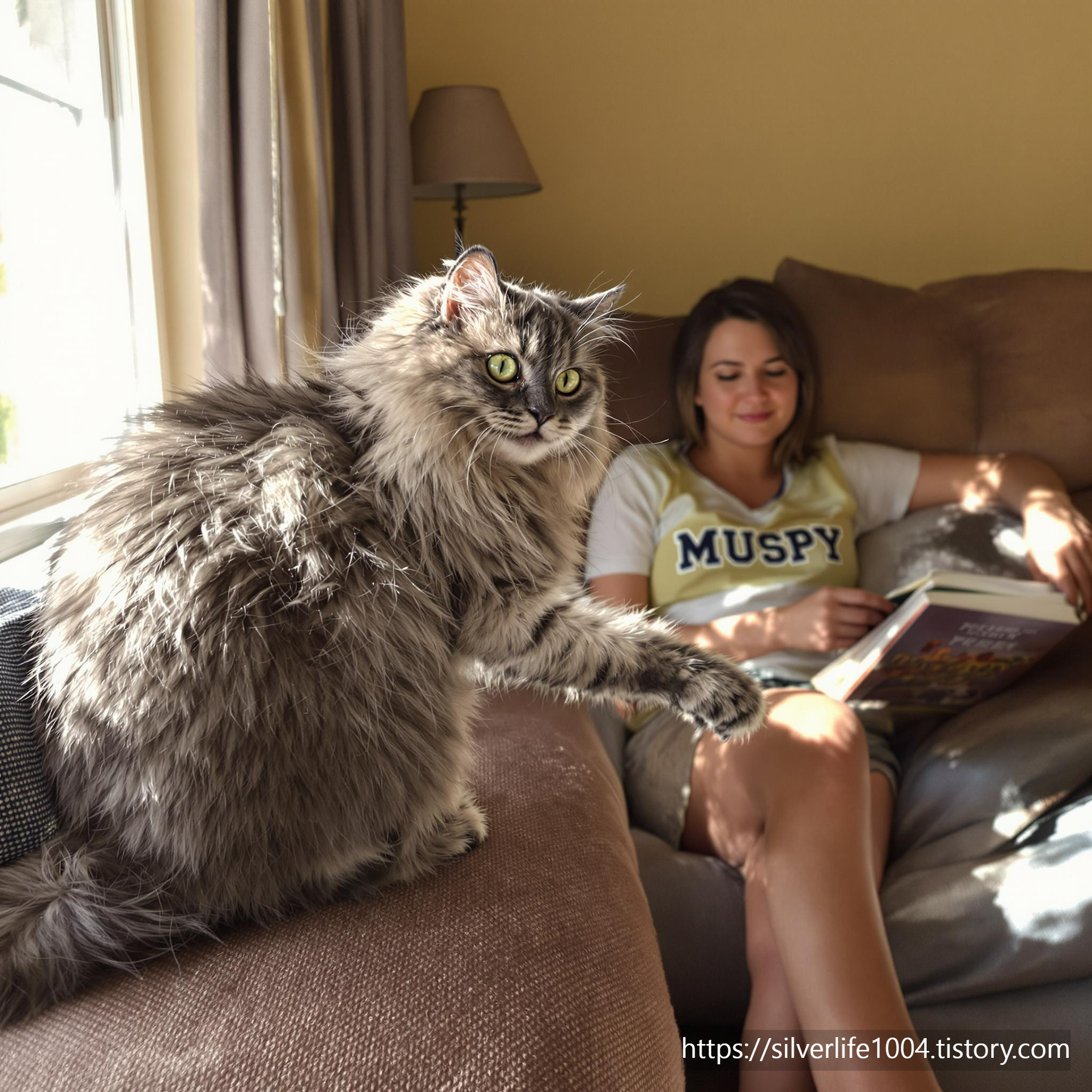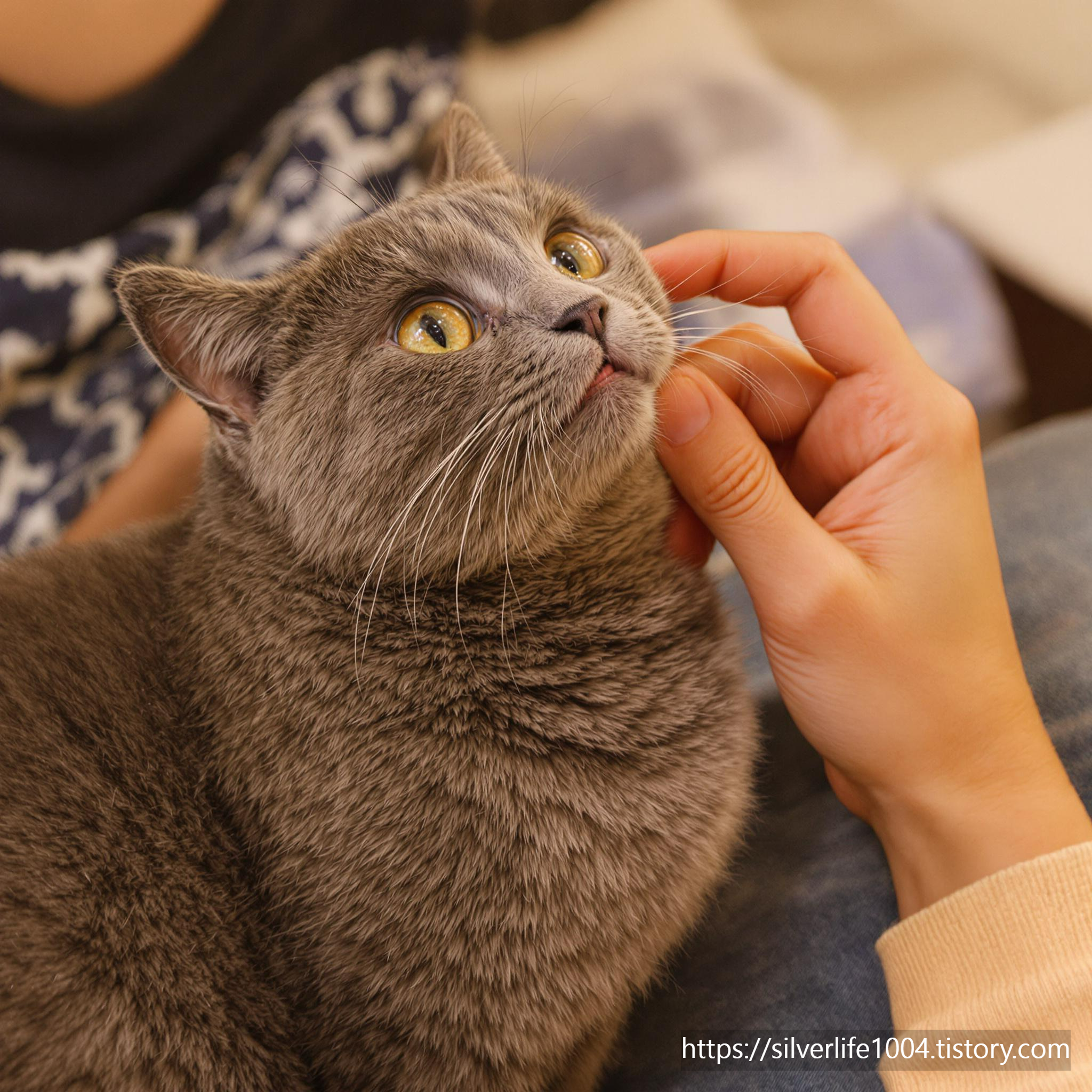- 고양이가 올라타면 부드럽게 쓰다듬어 주거나, 가볍게 대화를 나누세요.