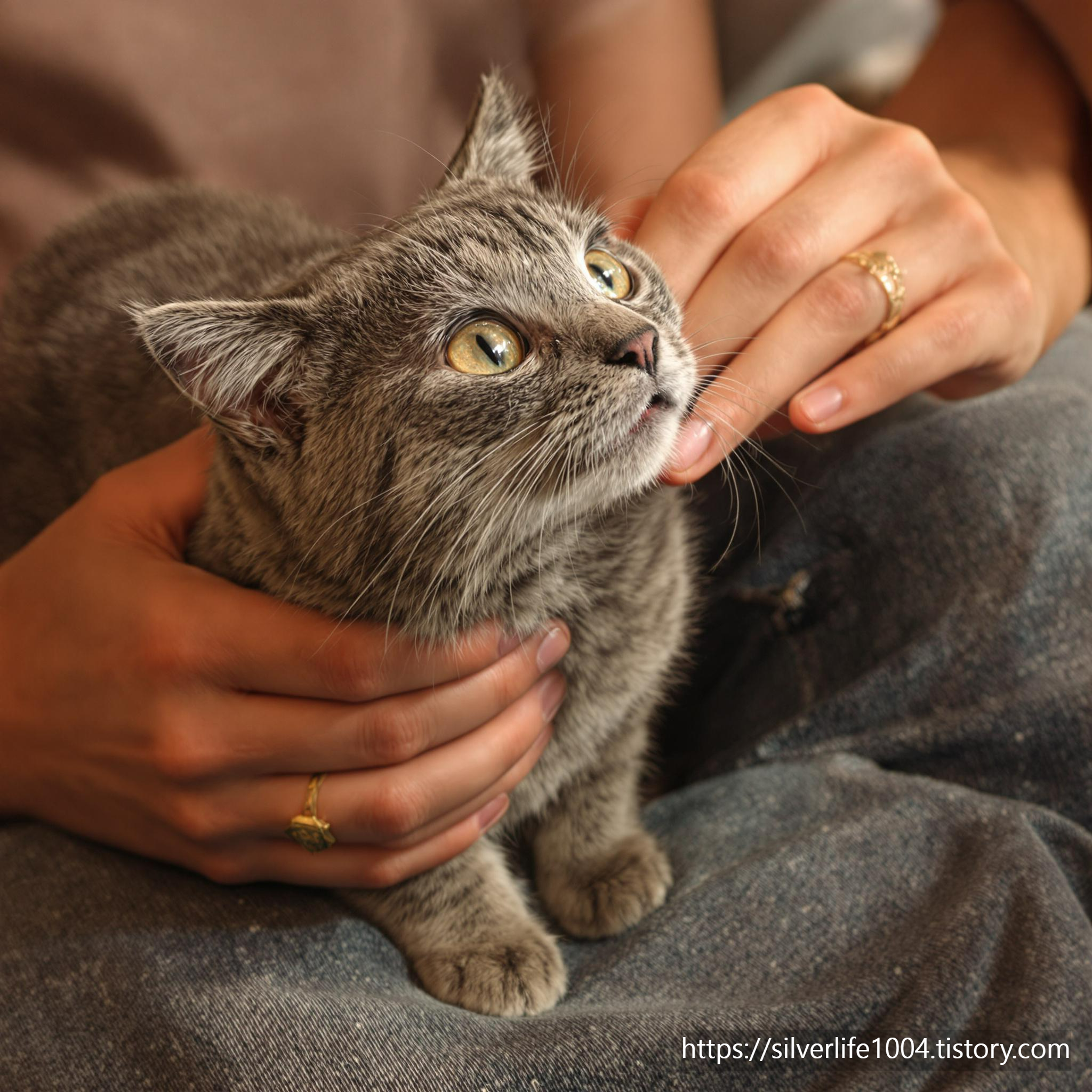 - 천천히 쓰다듬으며 고양이가 안정감을 느낄 수 있도록 해주세요.